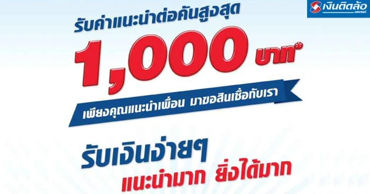 พิเศษ!! รับค่าแนะนำสูงสุด 1,000 บาท เมื่อแนะนำเพื่อนขอสินเชื่อกับเงินติดล้อ