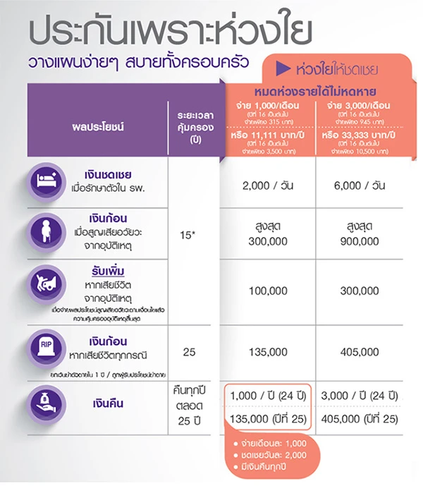 มี 2 แผน คือ แผน 200,000 บาท และ 400,000 บาท