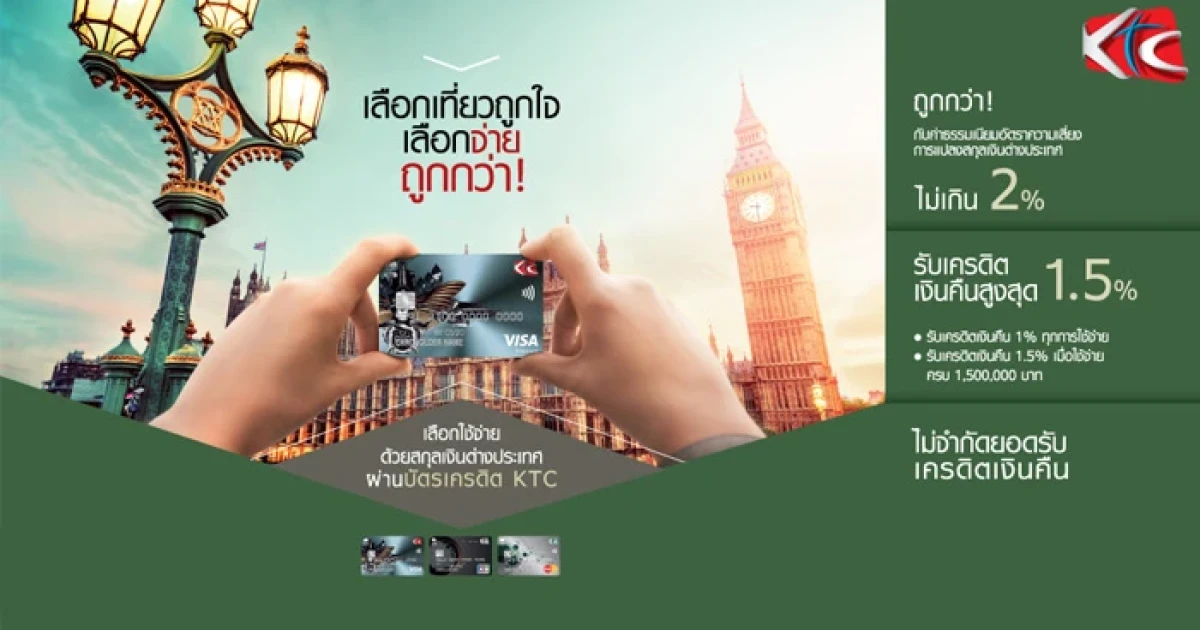 เลือกเที่ยวถูกใจ เลือกจ่ายถูกกว่า รับเครดิตเงินคืนสูงสุด 1.5% เมื่อใช้จ่ายที่ต่างประเทศ ด้วยบัตรฯ KTC