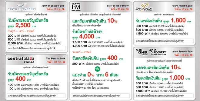 รายละเอียดโปรโมชั่น ณ ห้างสรรพสินค้าชั้นนำ ที่ร่วมรายการ