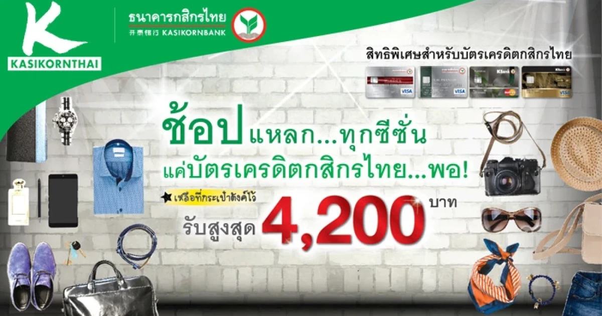 ช้อปแหลก.. ทุกซีซั่น รับเงินคืนสูงสุด 4,200 บาท ที่ห้างสรรพสินค้าชั้นนำ จากบัตรเครดิตกสิกรไทย