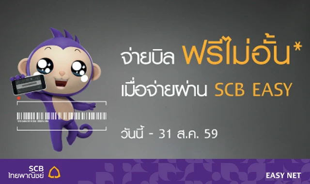 SCB EASY จาก ธ.ไทยพาณิชย์ ให้คุณจ่ายบิลฟรีไม่อั้น วันนี้ - 31 ส.ค. 59