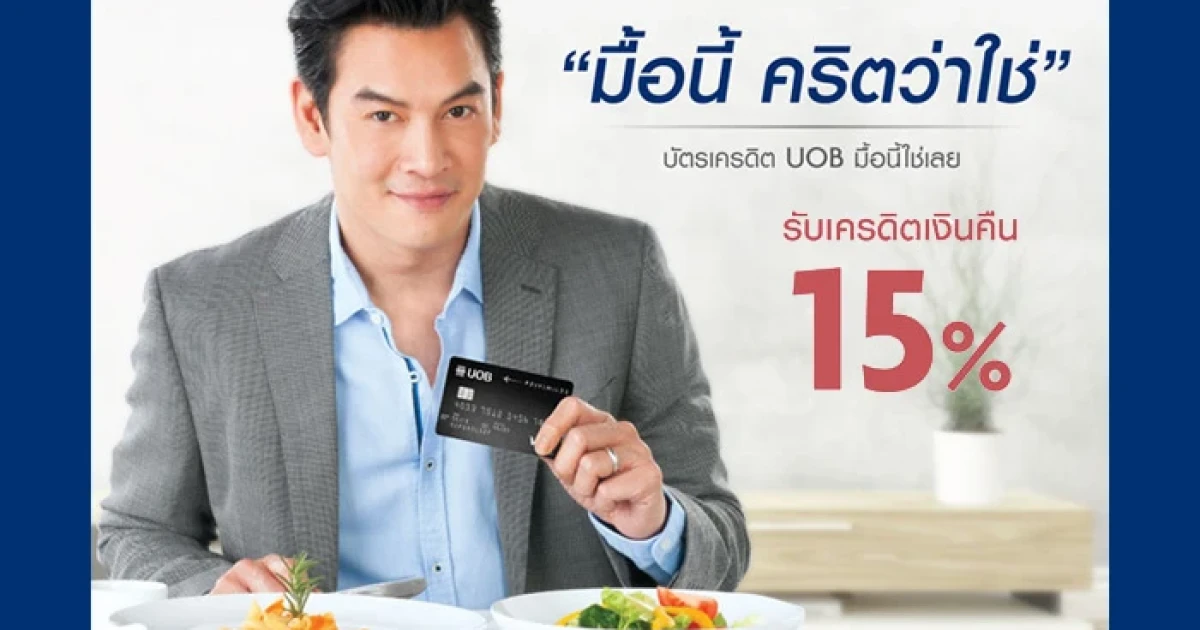 กินเท่าไร ใช้คะแนนสะสมแลกรับเครดิตเงินคืนสูงสุด 15% ทุกร้านอาหารที่ร่วมรายการ จากบัตรเครดิตยูโอบี