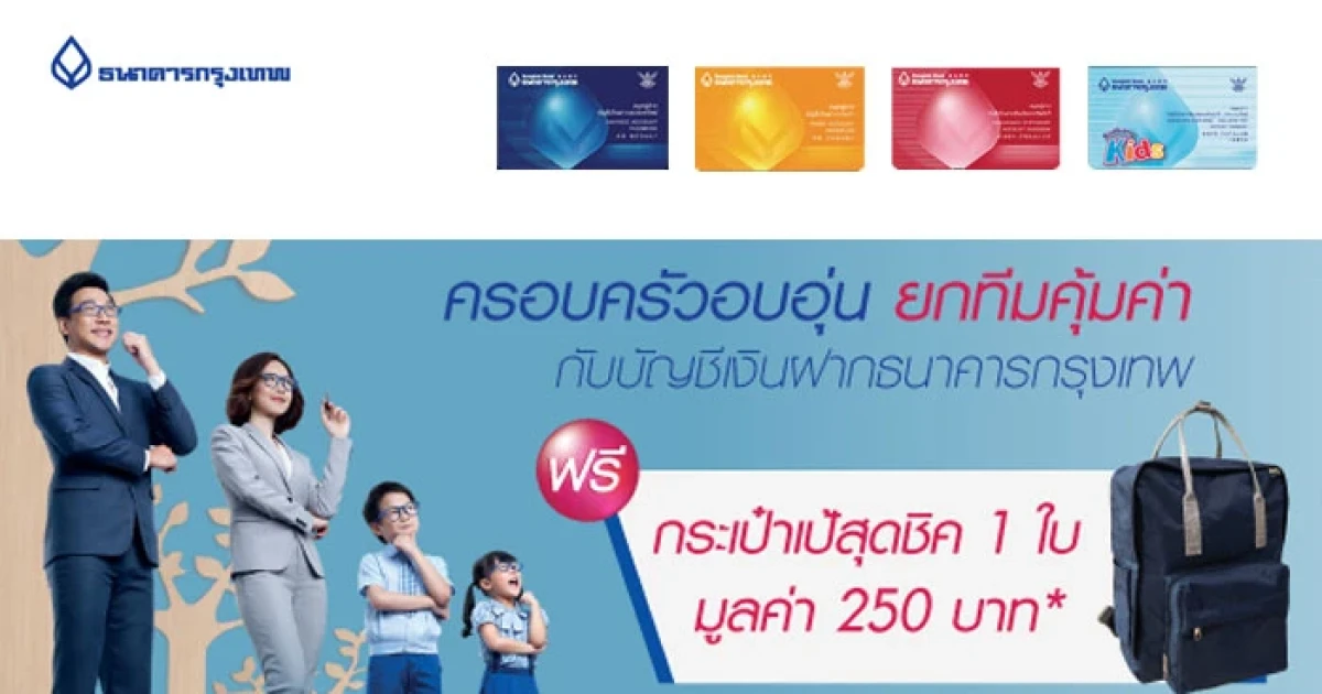 ฟรี! กระเป๋าเป้สุดชิค เพียงเปิดบัญชีเงินฝาก พร้อมสมัครบริการของธนาคารกรุงเทพ กับ 3 ทางเลือกสุดคุ้ม