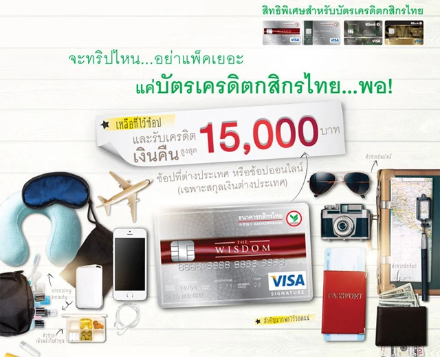 จะทริปไหน... อย่าแพ็คเยอะ แค่บัตรเครดิตกสิกรไทย ก็พอ! รับเครดิตเงินคืนสูงสุด 15,000 บาท เมื่อช้อปที่ต่างประเทศ หรือช้อปออนไลน์ เป็นสกุลเงินต่างประเทศ