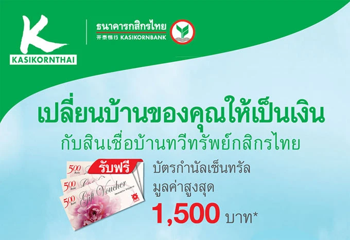 รับฟรี! บัตรกำนัลเซ็นทรัล สูงสุด 1,500 บาท กับสินเชื่อบ้านทวีทรัพย์กสิกรไทย