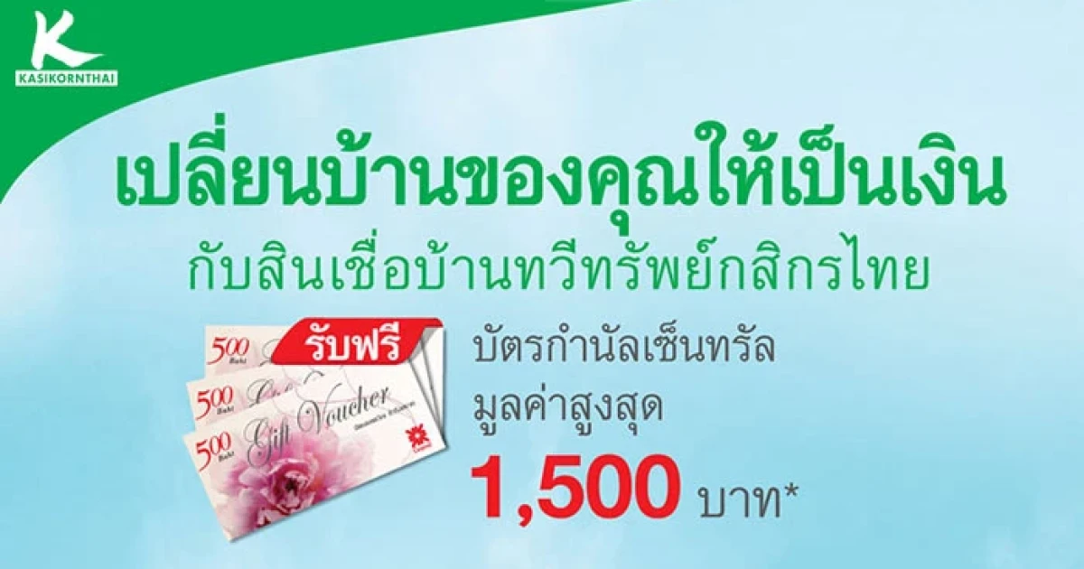 รับฟรี! บัตรกำนัลเซ็นทรัล สูงสุด 1,500 บาท กับสินเชื่อบ้านทวีทรัพย์กสิกรไทย