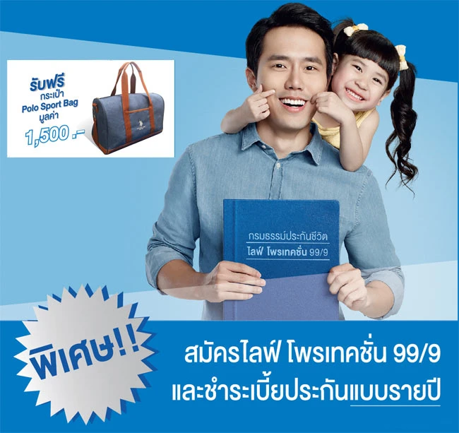 พิเศษ!! สมัครไลฟ์ โพรเทคชั่น 99/9 และชำระเบี้ยประกันแบบรายปี รับฟรี... กระเป๋า Polo Sport Bag มูลค่า 1,500 บาท