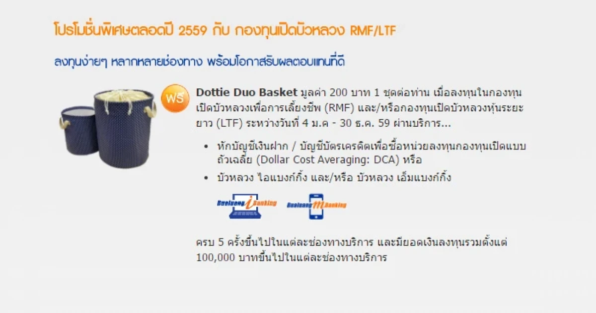 ฟรี! Dottie Duo Basket เมื่อลงทุนในกองทุนเปิด RMF/LTF กับ บลจ.บัวหลวง