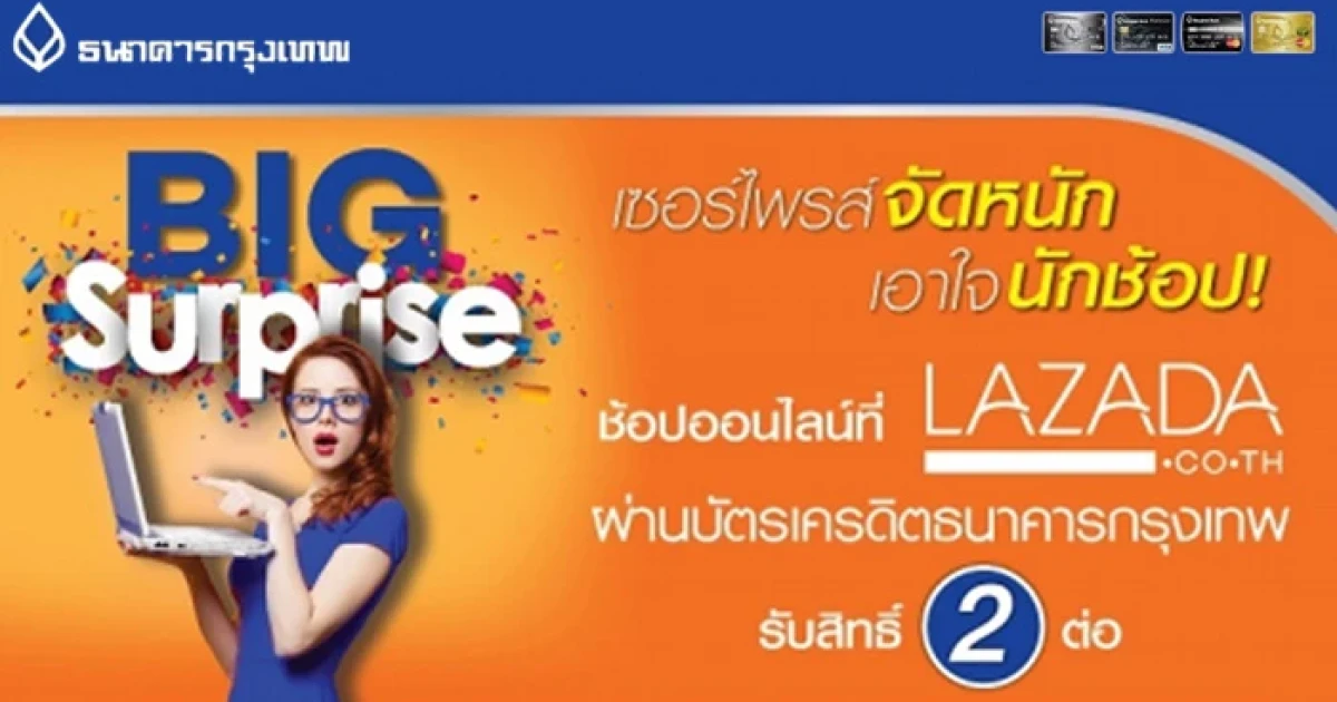 เซอร์ไพรส์จัดหนัก เอาใจนักช้อป! รับสิทธิพิเศษ 2 ต่อ เมื่อช้อปที่ LAZADA.CO.TH ผ่านบัตรฯ ธ.กรุงเทพ