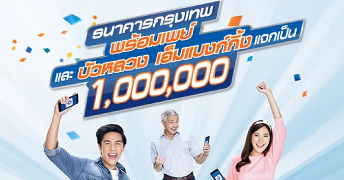 ลุ้นรับ E-Money 1 ล้านบาท เมื่อลงทะเบียน ธ.กรุงเทพ พร้อมเพย์ หรือสมัครบริการบัวหลวง เอ็มแบงก์กิ้ง