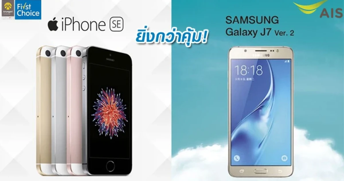 ยิ่งกว่าคุ้ม! ผ่อนเบาๆ 0% iPhone SE หรือ SAMSUNG Galaxy J7 นานสูงสุด 24 เดือน เริ่มต้นเพียง 650 บาท ที่เอไอเอส ช็อป เทเลวิซ และร้านค้าที่ร่วมรายการ ด้วยบัตรกรุงศรีเฟิร์สช้อยส์