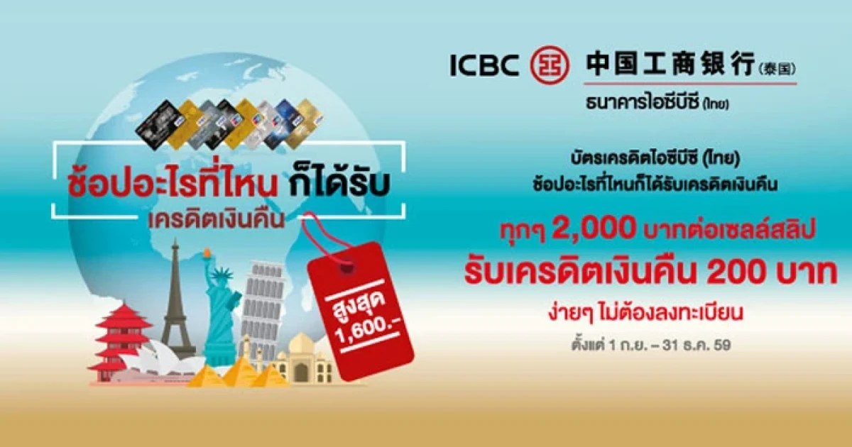 ช้อปอะไร ที่ไหน ก็ได้รับเงินคืนสูงสุด 1,600 บาท ง่ายๆ.. ไม่ต้องลงทะเบียน จากบัตรเครดิต ICBC (Thai)