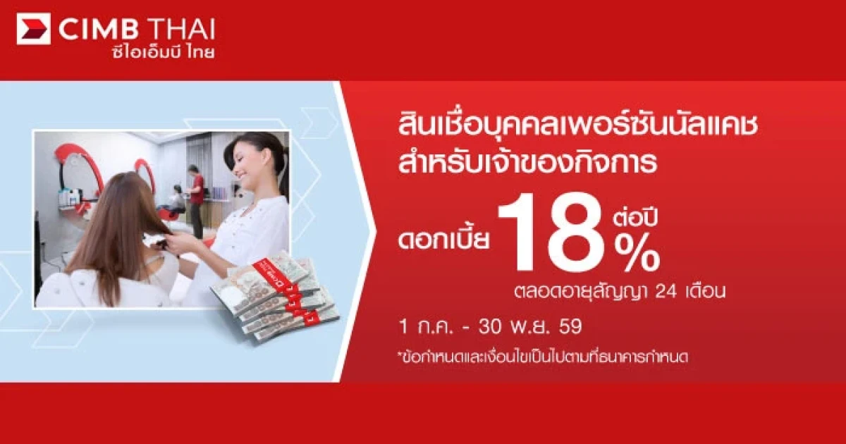 สินเชื่อบุคคลเพอร์ซันนัลแคช สำหรับเจ้าของกิจการ ดอกเบี้ย 18% ต่อปี จาก ธ.ซีไอเอ็มบี ไทย
