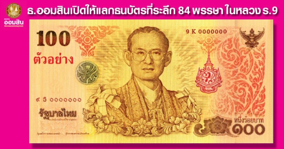 ธ.ออมสิน เปิดให้แลกธนบัตรที่ระลึก 84 พรรษา ในหลวง รัชกาลที่ 9 อีกครั้ง วันที่ 26 ต.ค. นี้