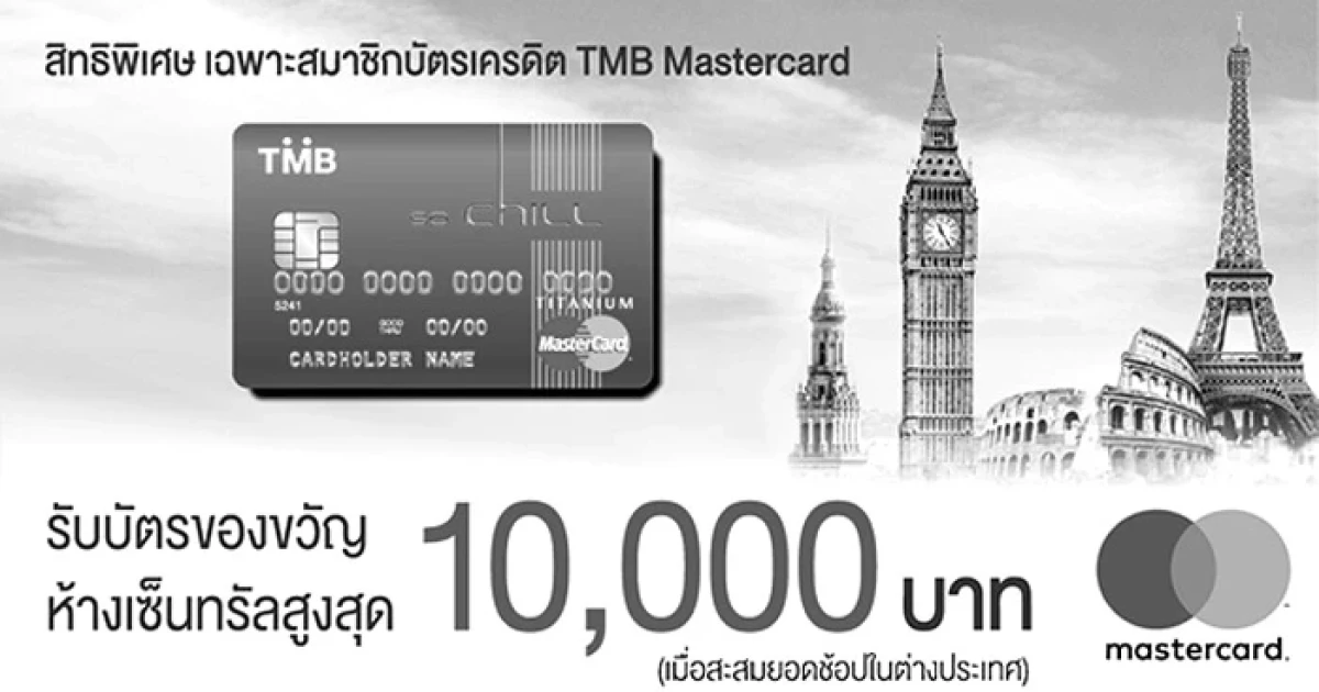 สิทธิพิเศษเฉพาะสมาชิก บัตรเครดิต TMB MasterCard รับบัตรของขวัญห้างเซ็นทรัล สูงสุด 10,000 บาท เมื่อสะสมยอดช้อปในต่างประเทศ เป็นสกุลเงินต่างประเทศตามเกณฑ์ที่ธนาคารฯ กำหนด
