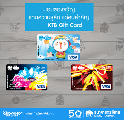 KTB Gift Card บัตรของขวัญแทนทุกความหมายและความรู้สึกดีๆ ของคุณที่มอบแด่คนพิเศษ จาก ธ.กรุงไทย