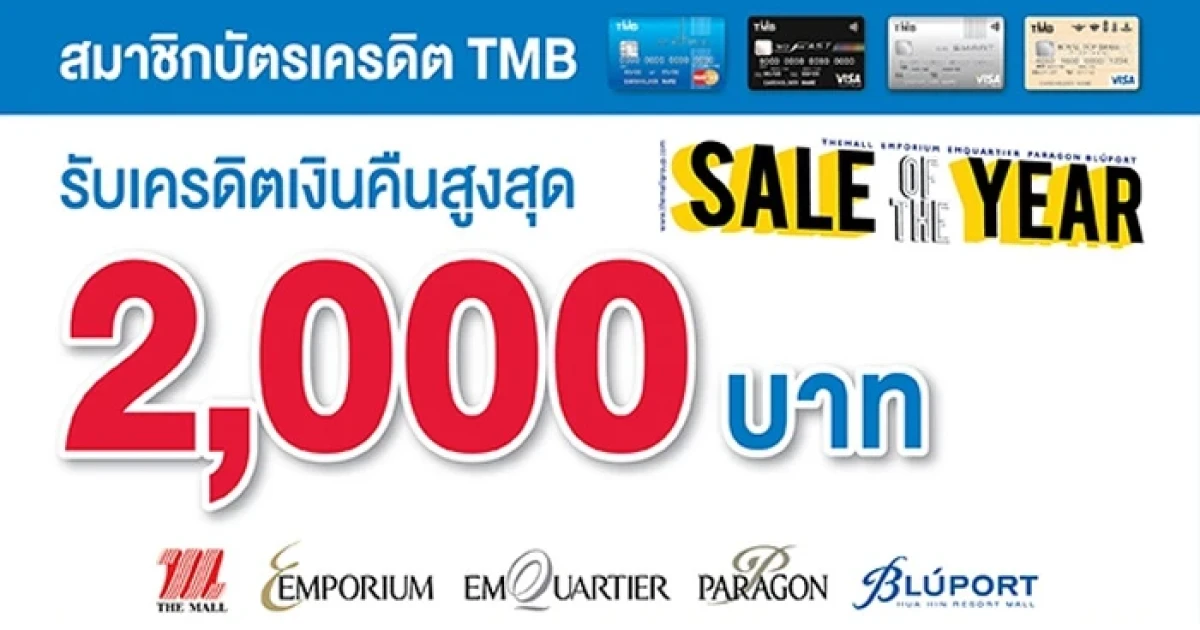 Sale of The Year รับเครดิตเงินคืนสูงสุด 2,000 บาท เมื่อช้อปที่ห้างฯ ที่ร่วมรายการ ผ่านบัตรเครดิต TMB