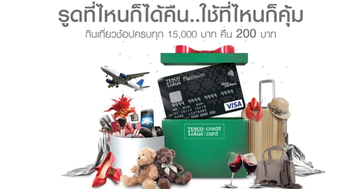 รูดที่ไหนก็ได้คืน..ใช้ที่ไหนก็คุ้ม ไม่ว่าจะกิน ช้อป เที่ยว ครบทุก 15,000 บาท คืน 200 บาท สิทธิพิเศษจากบัตรเครดิตเทสโก้ โลตัส วีซ่า
