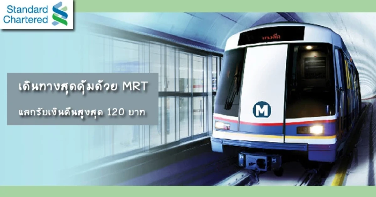 เดินทางสุดคุ้มด้วย MRT แลกรับเงินคืนสูงสุด 120 บาท เมื่อซื้อบัตรโดยสารผ่านบัตรฯ สแตนดาร์ดชาร์เตอร์ด