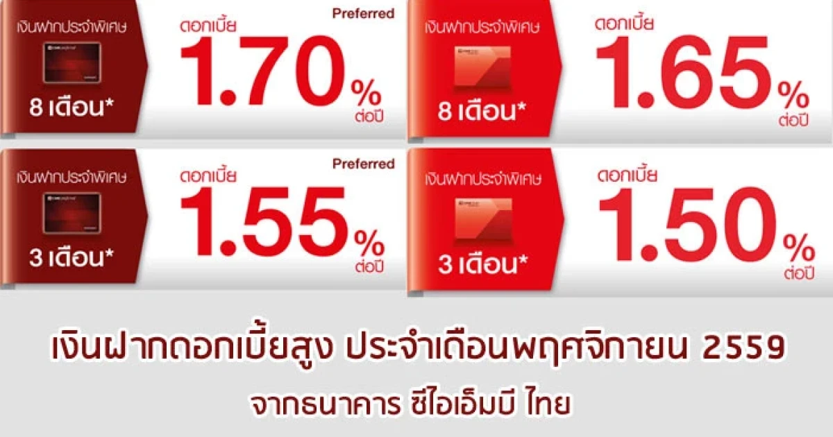 เงินฝากประจำดอกเบี้ยสูง ประจำเดือนพฤศจิกายน 2559 จาก ธ.ซีไอเอ็มบี ไทย