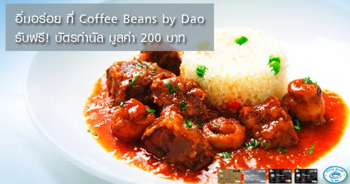อิ่มอร่อยที่ร้าน Coffee Beans by Dao รับฟรี! บัตรกำนัลมูลค่า 200 บาท เมื่อชำระค่าอาหารผ่านบัตรเครดิตสแตนดาร์ดชาร์เตอร์ด ตั้งแต่ 2,000 บาทขึ้นไป/ เซลล์สลิป (เฉพาะสาขาร่วมฤดี และสาขาเอกมัย)