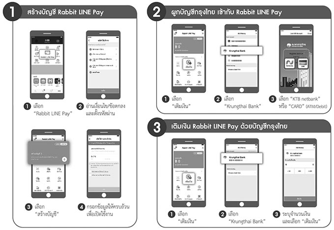 ช่องทางเติมเงินเข้ากระเป๋าเงิน Rabbit LINE Pay ด้วยบริการหักบัญชีธนาคารกรุงไทยอัตโนมัติ ซึ่งอำนวยความสะดวกให้กับผู้ใช้บริการในการเติมเงิน เพื่อใช้จ่ายค่าสินค้าและบริการผ่าน Rabbit LINE Pay โดยลูกค้าที่ต้องการขอสมัครใช้บริการสามารถทำรายการได้เองที่เดียวจบบน LINE Application