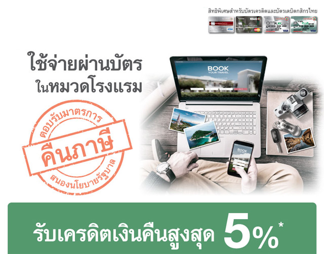 ตอบรับมาตรการคืนภาษี รับเครดิตเงินคืนสูงสุด 5% เมื่อใช้จ่ายในหมวดโรงแรม ผ่านบัตรกสิกรไทย