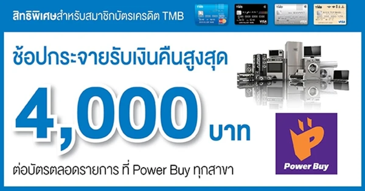 ช้อปกระจาย รับเงินคืนสูงสุด 4,000 บาท ที่ Power Buy ทุกสาขา จากบัตรเครดิต TMB