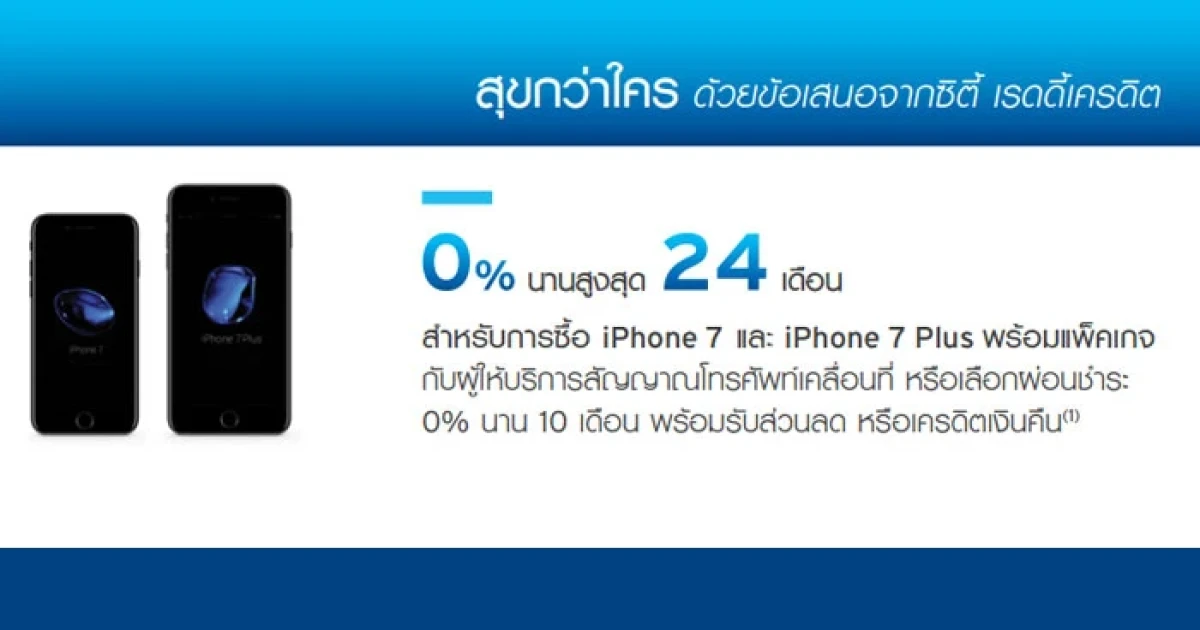 ซื้อ iPhone 7 และ iPhone 7 Plus พร้อมแพ็คเกจ ผ่อน 0% นาน 24 เดือน จากซิตี้ เรดดี้เครดิต