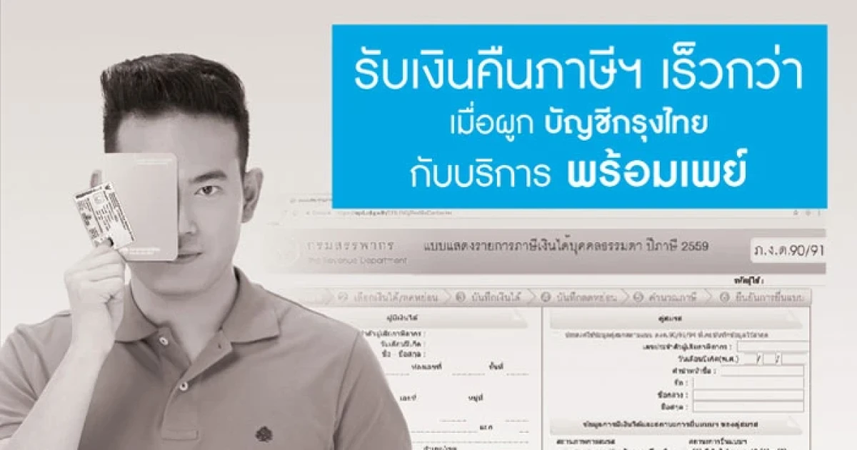 รับเงินคืนภาษีฯ เร็วกว่า เมื่อผูกบัญชีกรุงไทยกับบริการ "พร้อมเพย์" ด้วยเลขที่บัตรประจำตัวประชาชน สะดวก ปลอดภัย ไม่ต้องรอรับเช็คหลังจากที่กรมสรรพากรได้รับข้อมูลการยื่นรายการภาษีฯ ครบถ้วน