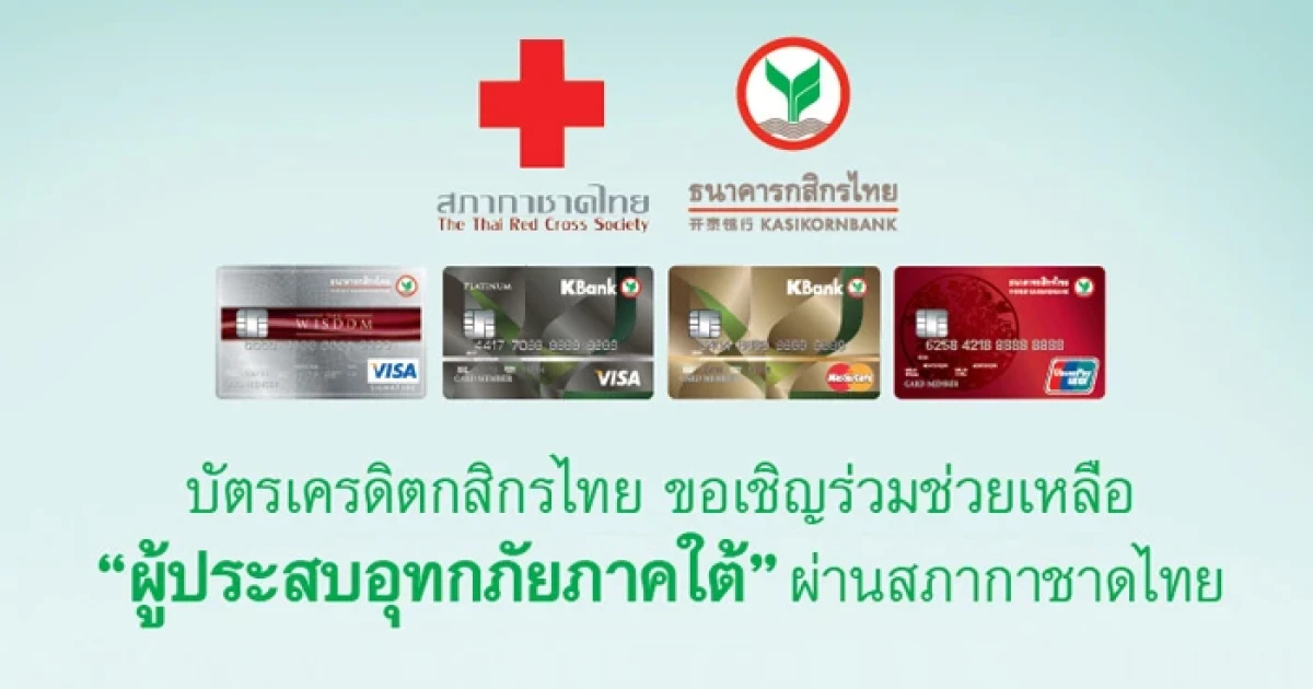 บัตรฯ กสิกรไทย.. ร่วมช่วยเหลือ "ผู้ประสบอุทกภัยภาคใต้" ผ่านสภากาชาดไทย แลกคะแนนแทนเงินบริจาค