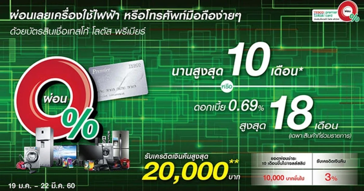 พิเศษ! ผ่อนเครื่องใช้ไฟฟ้า หรือมือถือ 0% ด้วยบัตรสินเชื่อเทสโก้ โลตัส พรีเมียร์