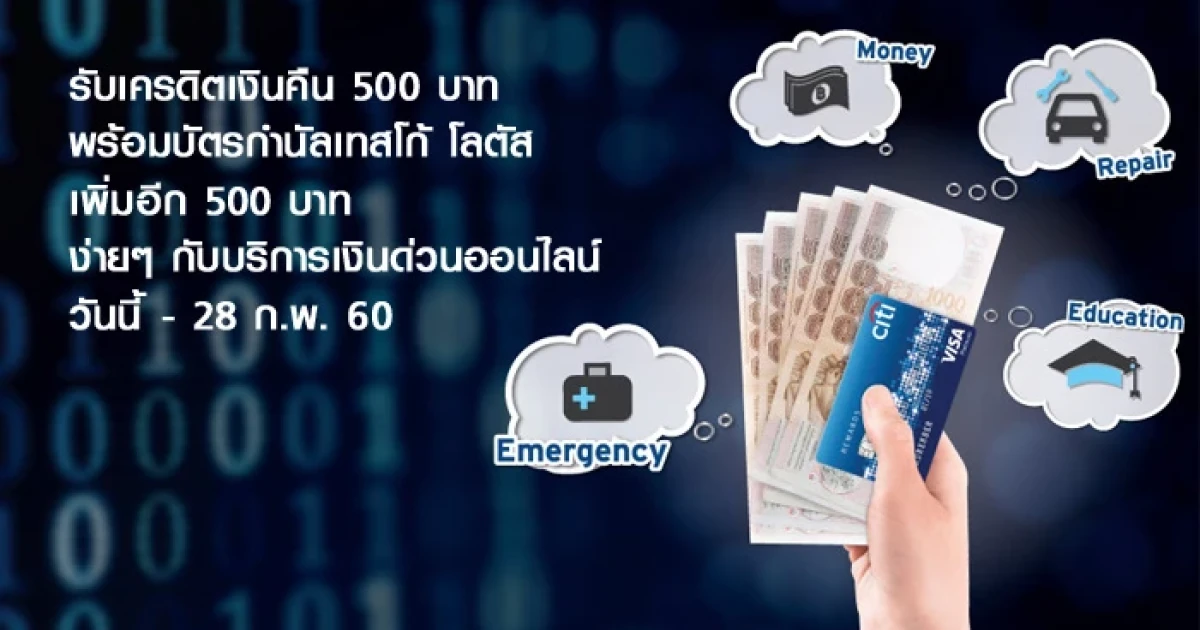 รับเงินคืน 500 บาท พร้อมบัตรกำนัลเทสโก้ โลตัสเพิ่มอีก 500 บาท กับบริการเงินด่วนออนไลน์ จากบัตรฯ ซิตี้