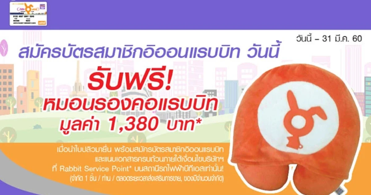 รับฟรี! หมอนรองคอแรบบิท เมื่อสมัครบัตรสมาชิกอิออนแรบบิท วันนี้ - 31 มีนาคม 2560