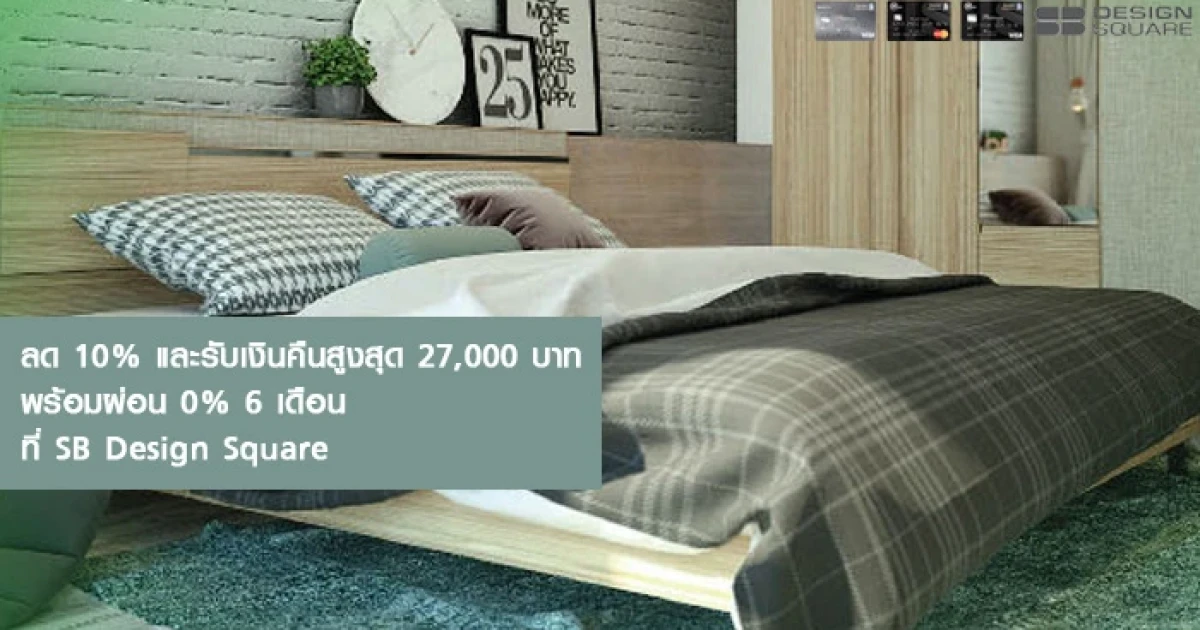 ช้อปเฟอร์นิเจอร์ชิ้นโปรด ลดทันที 10% และรับเงินคืนสูงสุด 27,000 บาท พร้อมผ่อน 0% นาน 6 เดือน