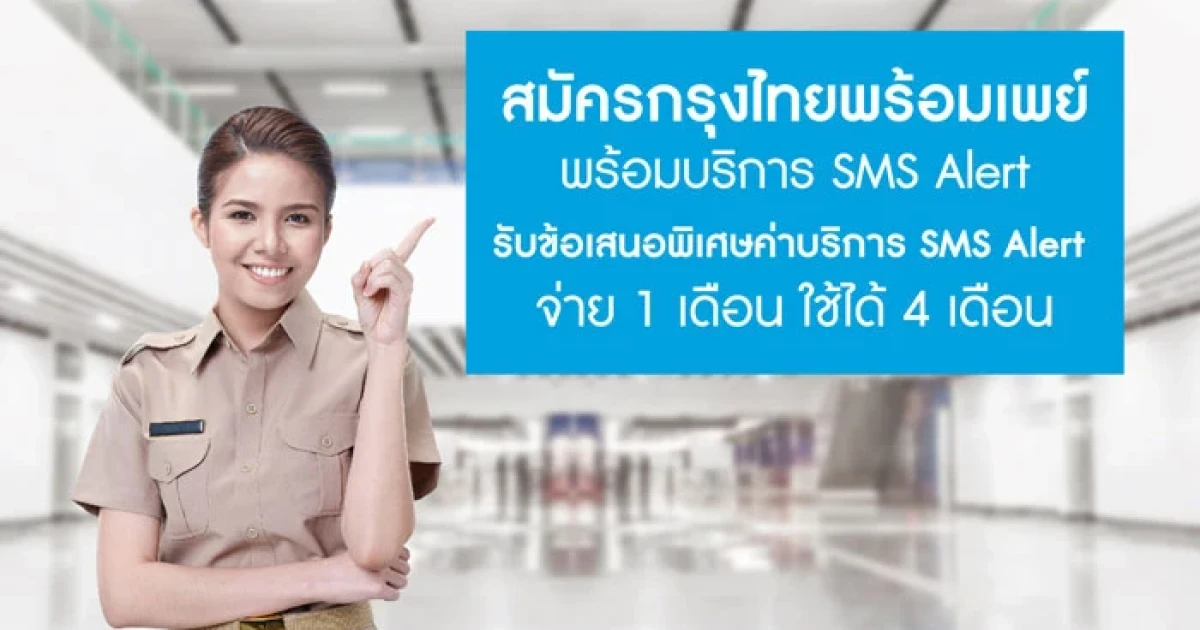 พิเศษ! เฉพาะข้าราชการ และพนักงานรัฐวิสาหกิจ สมัครพร้อมเพย์กรุงไทย ใช้ SMS Alert จ่าย 1 ใช้ 4 เดือน