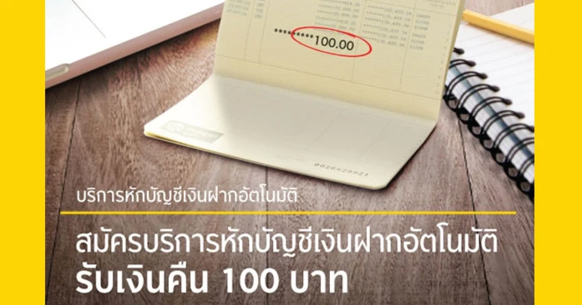 สมัครบริการหักบัญชีเงินฝากอัตโนมัติ รับเงินคืน 100 บาท จาก ธ.กรุงศรีอยุธยา