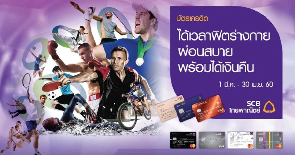 ได้เวลาฟิตร่างกาย ผ่อนสบาย พร้อมได้เงินคืน! ผ่อน 0% นานสูงสุด 10 เดือน พร้อมรับเครดิตเงินคืนสูงสุด 3,000 บาท เมื่อซื้อสินค้า ณ ร้าน Supersports ทุกสาขา และ GO Sports สาขาเมกาบางนา สิทธิพิเศษจากบัตรเครดิตไทยพาณิชย์