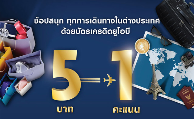 ช้อปสนุก ทุกการเดินทางในต่างประเทศ รับคะแนนสะสมอัตราพิเศษ 5 บาท = 1 คะแนน จากบัตรเครดิตยูโอบี