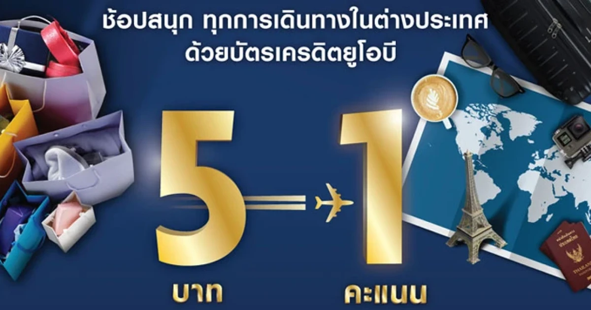ช้อปสนุก ทุกการเดินทางในต่างประเทศ รับคะแนนสะสมอัตราพิเศษ 5 บาท = 1 คะแนน จากบัตรเครดิตยูโอบี