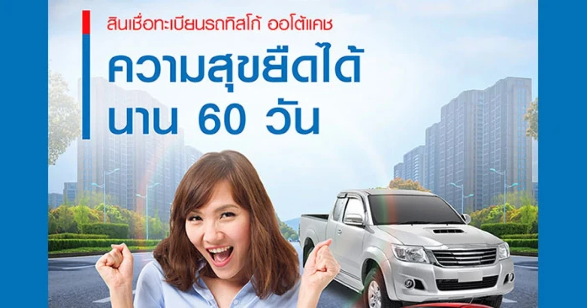 สินเชื่อทะเบียนรถทิสโก้ ออโต้แคช ความสุขยืดได้นาน 60 วัน ดอกเบี้ยเริ่มต้น 0.55% ต่อเดือน
