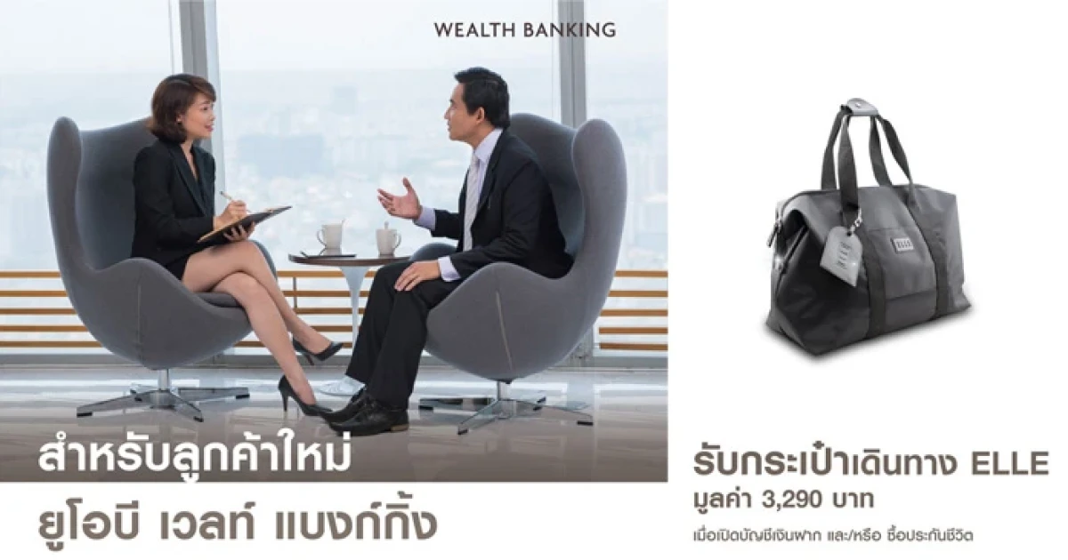 สำหรับลูกค้าใหม่ ยูโอบี เวลท์ แบงก์กิ้ง รับกระเป๋าเดินทาง ELLE มูลค่า 3,290 บาท เมื่อเปิดบัญชีเงินฝาก และ/หรือ ซื้อประกันชีวิต