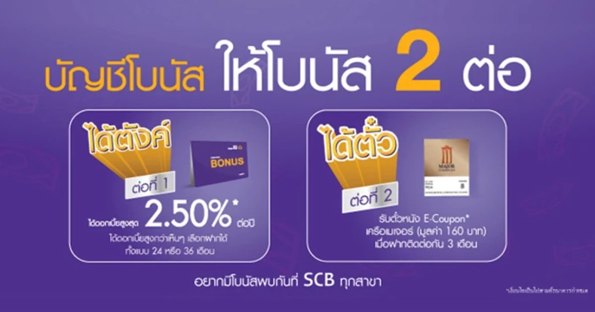 รับโบนัส 2 ต่อ เมื่อเปิดบัญชีโบนัสกับธนาคารไทยพาณิชย์