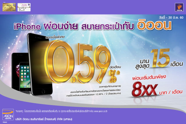 - สิทธิพิเศษสำหรับผู้ถือบัตรเครดิตอิออน และบัตรสมาชิกอิออนทุกประเภท ที่ออกโดยบริษัท อิออน ธนสินทรัพย์ (ไทยแลนด์) จำกัด (มหาชน) ("บริษัทฯ") เท่านั้น (ยกเว้นบัตรเครดิตเพื่อองค์กร) ที่ผ่อนชำระโทรศัพท์มือถือ ยี่ห้อ Apple รุ่น iPhone 7, 7 Plus, 6 และ 5S ด้วยวงเงินสินเชื่อเงินกู้ที่ร้านเพาเวอร์บายทุกสาขา ตั้งแต่วันนี้ - 30 มิ.ย. 2560 เท่านั้น