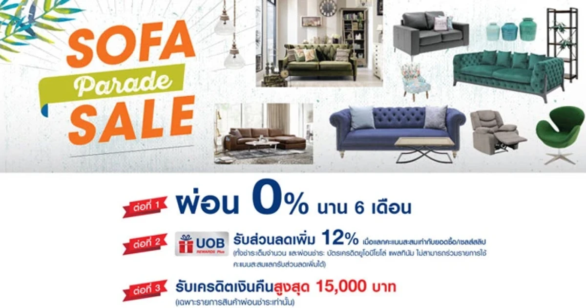 ผ่อนชำระ 0% นาน 6 เดือน พร้อมรับเครดิตเงินคืนสูงสุด 15,000 บาท ได้ที่ SB Design Square สิทธิพิเศษจากบัตรเครดิตยูโอบี