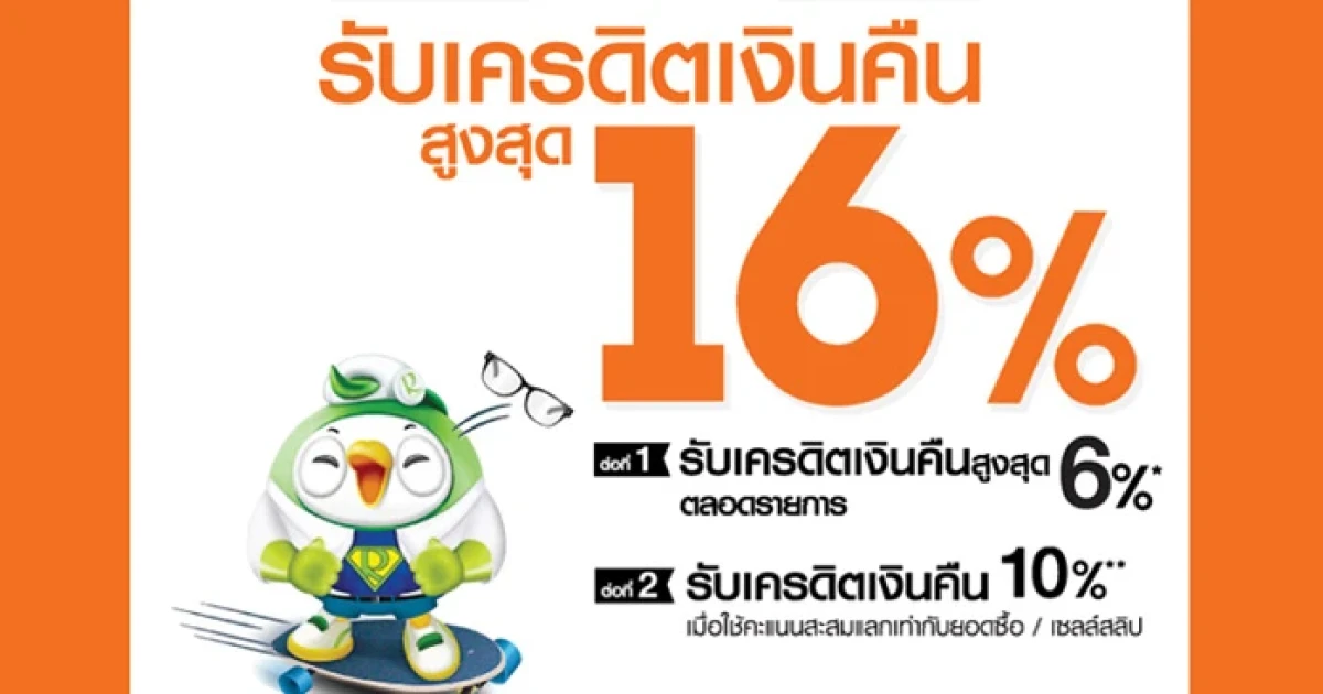 รับเครดิตเงินคืนสูงสุด 16% เมื่อช้อปสินค้าที่ห้างโรบินสัน ที่ร่วมรายการ และชำระผ่านบัตรเครดิตธนชาต