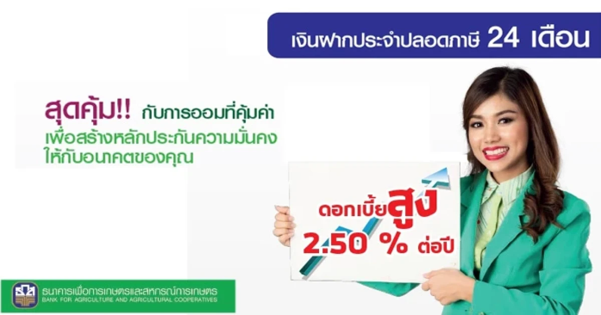 เงินฝากประจำปลอดภาษี 24 เดือน จาก ธ.ก.ส. ให้ดอกเบี้ยสูง 2.50% ต่อปี
