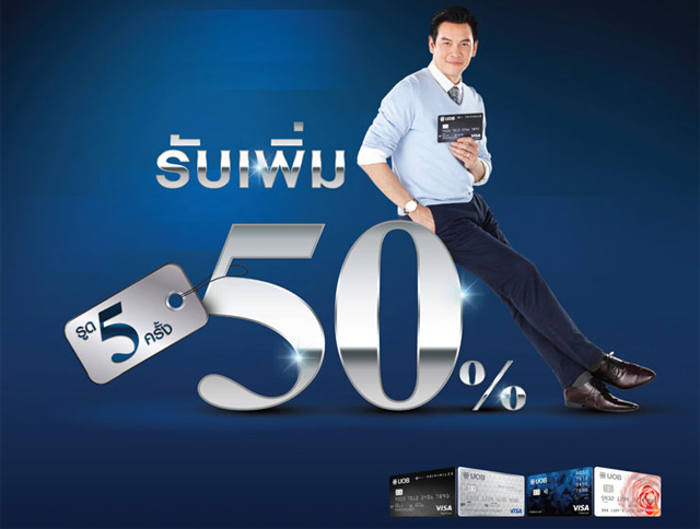 รูดครบ 5 ครั้ง รับคะแนนสะสมพิเศษเพิ่ม 50% เมื่อมียอดใช้จ่ายภายในประเทศ ผ่านบัตรเครดิตยูโอบี