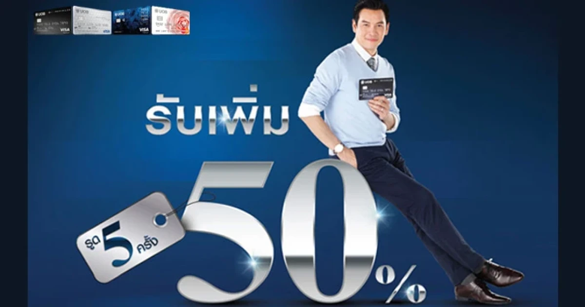 รูดครบ 5 ครั้ง รับคะแนนสะสมพิเศษเพิ่ม 50% เมื่อมียอดใช้จ่ายภายในประเทศ ผ่านบัตรเครดิตยูโอบี